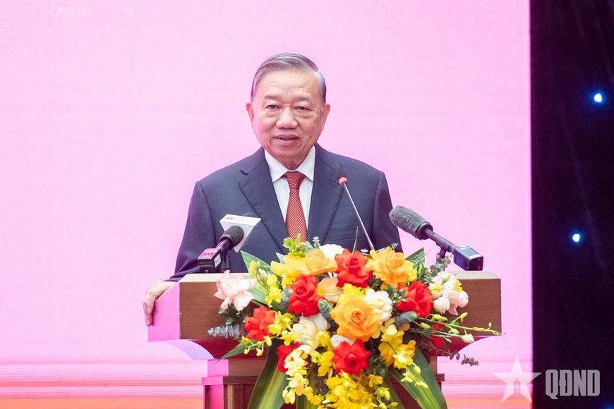 | Tổng Bí thư Tô Lâm phát biểu chỉ đạo, giao nhiệm vụ tại buổi lễ. Ảnh: PHẠM THẮNG |