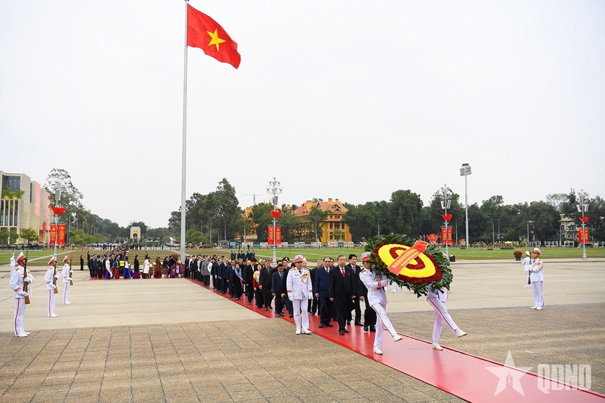 Trước anh linh Chủ tịch Hồ Chí Minh, các đồng chí lãnh đạo bày tỏ lòng biết ơn vô hạn, thành kính tưởng nhớ công lao to lớn của Chủ tịch Hồ Chí Minh đối với sự nghiệp đấu tranh giải phóng dân tộc, thống nhất đất nước, xây dựng Tổ quốc Việt Nam xã hội chủ nghĩa hòa bình, độc lập, thống nhất và phát triển.