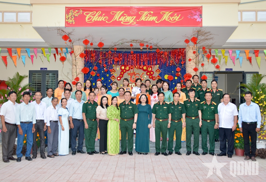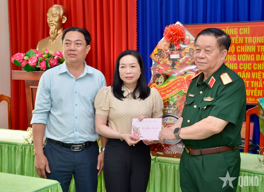 Cùng ngày, tại Đồng Tháp, Đại tướng Nguyễn Trọng Nghĩa đến thăm, chúc Tết Ban Chỉ huy Phòng thủ khu vực 1 (Bộ Chỉ huy Quân sự tỉnh), Trường Tiểu học Nguyễn Thị Tốt (xã Vĩnh Hựu).