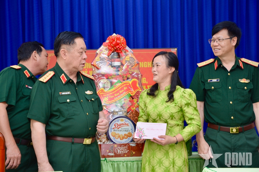 Dịp này, Đại tướng Nguyễn Trọng Nghĩa đã tặng quà và gửi lời chúc mừng năm mới đến cán bộ, chiến sĩ Ban chỉ huy PTKV 1 - Long Thuận.