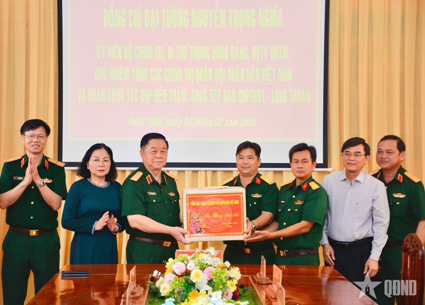 Đến thăm Ban Chỉ huy Phòng thủ khu vực (PTKV) 1 - Long Thuận dịp Tết Nguyên đán Bính Ngọ 2026, Đại tướng Nguyễn Trọng Nghĩa đã nghe báo cáo một số kết quả nổi bật trong thực hiện nhiệm vụ, phương hướng, nhiệm vụ thời gian tới, nhất là công tác chuẩn bị tuyển quân của đơn vị.