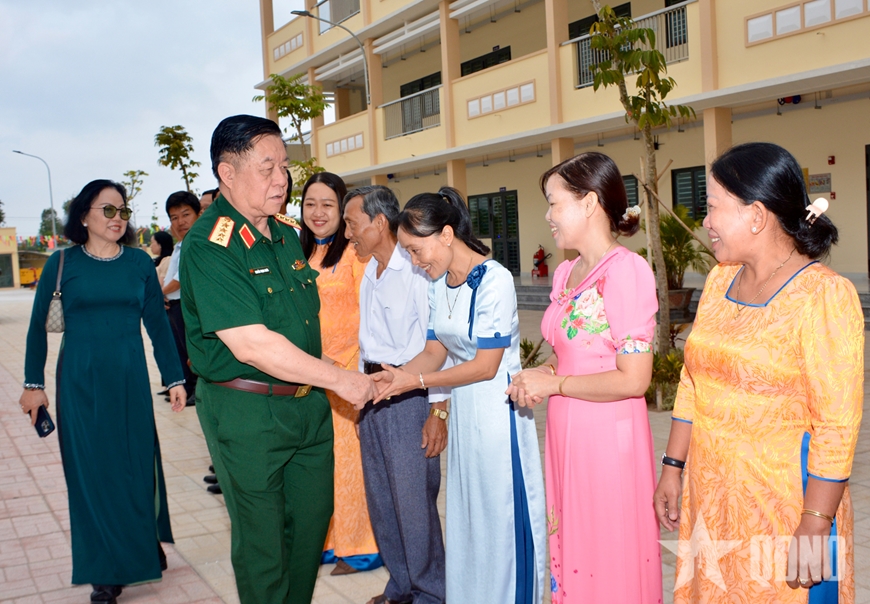 | Đại tướng Nguyễn Trọng Nghĩa đến thăm thầy và trò Trường Tiểu học Nguyễn Thị Tốt. |