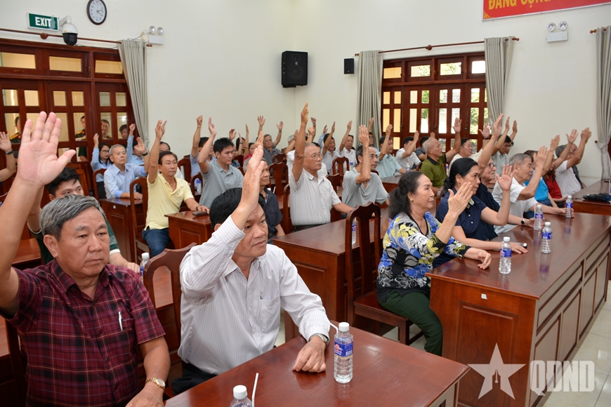 Tại hội nghị, cử tri đã nghe giới thiệu các tiêu chuẩn của người ứng cử đại biểu Quốc hội khóa XVI và tóm tắt tiểu sử Đại tướng Nguyễn Trọng Nghĩa.