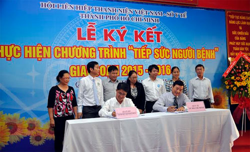 QĐND Online – Sáng 10-11, Hội Liên hiệp Thanh niên Việt Nam TP Hồ Chí Minh phối hợp Sở Y tế Thành phố ký kết liên tịch phối hợp thực hiện Đề án tổ chức chương trình “Tiếp sức người bệnh” và ra quân thực hiện giai đoạn 3 (2015 – 2016).
