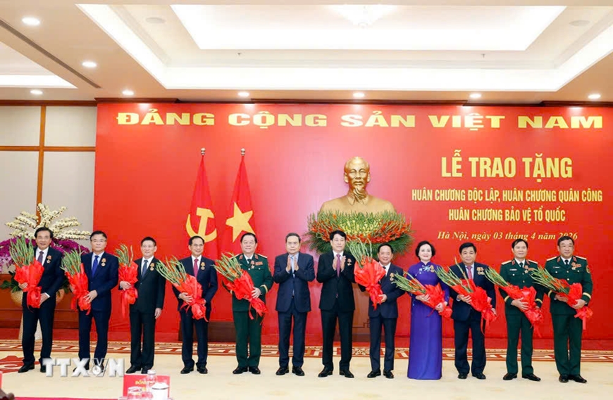 Tổng Bí thư Tô Lâm trao Huân chương Độc lập hạng Nhất tặng đồng chí Phạm Minh Chính, Ủy viên Bộ Chính trị khóa XIII, Thủ tướng Chính phủ và Huân chương Quân công hạng Nhất tặng các đồng chí: Đại tướng Lương Cường, Ủy viên Bộ Chính trị khóa XIII, Chủ tịch nước; Đại tướng Phan Văn Giang, Ủy viên Bộ Chính trị, Phó bí thư Quân ủy Trung ương, Bộ trưởng Bộ Quốc phòng; Nguyễn Xuân Thắng, Ủy viên Bộ Chính trị khóa XIII, nguyên Giám đốc Học viện Chính trị Quốc gia Hồ Chí Minh, Chủ tịch Hội đồng Lý luận Trung ương; Thượng tướng Trần Quang Phương, Ủy viên Trung ương Đảng khóa XIII, Phó chủ tịch Quốc hội; Nguyễn Chí Dũng, Ủy viên Trung ương Đảng khóa XIII, Phó thủ tướng Chính phủ.