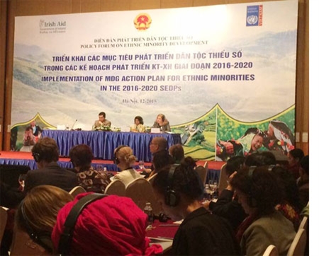 QĐND Online – Sáng 9-12, tại Hà Nội, Hội đồng Dân tộc của Quốc hội, Ủy ban Dân tộc của Chính phủ, Chương trình phát triển Liên hợp quốc (UNDP) và Đại sứ quán Ireland tại Việt Nam đồng tổ chức Diễn đàn phát triển dân tộc thiểu số với chủ đề “Triển khai các Mục tiêu phát triển dân tộc thiểu số trong các Kế hoạch phát triển kinh tế - xã hội giai đoạn 2016-2020”. Tham dự diễn đàn có ông Danh Út, Phó chủ tịch Hội đồng Dân tộc của Quốc hội; ông Sơn Phước Hoan, Thứ trưởng, Phó chủ nhiệm Ủy ban Dân tộc của Chính phủ; bà Pratibha Mehta, Điều phối viên Thường trú Liên hợp quốc tại Việt Nam, cùng đại diện cộng đồng người DTTS, đại diện các đối tác phát triển, các tổ chức xã hội và các nhà hoạch định chính sách.