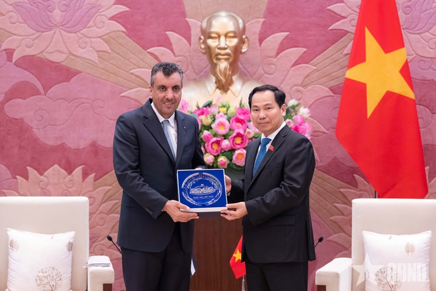 | Tổng Thư ký Quốc hội, Chủ nhiệm Văn phòng Quốc hội Lê Quang Mạnh trao quà tặng Tổng Thư ký Hạ viện Jordan Awwad A. O. Alghuwairi. |