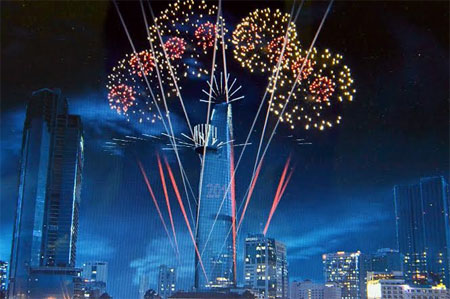 | Phối cảnh chương trình pháo hoa nghệ thuật tại Tòa tháp Bitexco. Ảnh: BTC |