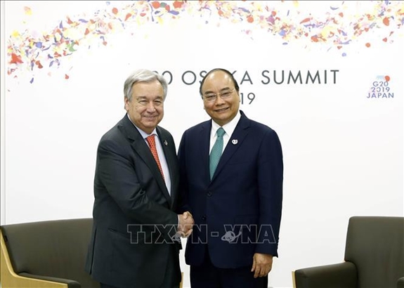 Tổng Thư ký LHQ Antonio Guterres chúc mừng Việt Nam đã trở thành Ủy viên không thường trực Hội đồng Bảo an LHQ nhiệm kỳ 2020-2021, cho rằng Việt Nam sẽ là nhân tố quan trọng, đóng góp tích cực vào hoạt động của Hội đồng Bảo an. Tổng Thư ký LHQ đánh giá cao tinh thần trách nhiệm của Việt Nam đóng góp vào hòa bình, ổn định trên thế giới, trong đó có việc tiếp tục cử lực lượng Gìn giữ hòa bình tới Nam Sudan; khẳng định sẽ ủng hộ Việt Nam hoàn thành tốt các vai trò tại LHQ. Thủ tướng Nguyễn Xuân Phúc trân trọng mời Tổng Thư ký LHQ thăm Việt Nam và dự các hoạt động liên quan của ASEAN trong năm 2020 và Tổng Thư ký LHQ vui vẻ nhận lời.