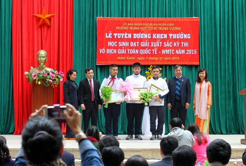QĐND Online – Sáng 7-12, Trường THCS Trưng Vương, Hà Nội đã tổ chức Lễ tuyên dương, khen thưởng những học sinh đạt thành tích xuất sắc cùng đội tuyển Việt Nam tại kỳ thi Toán quốc tế WMTC 2015, vừa diễn ra tại Bắc Kinh (Trung Quốc)...