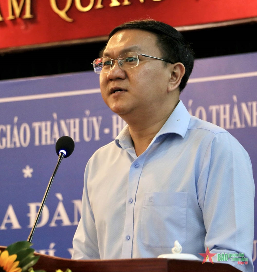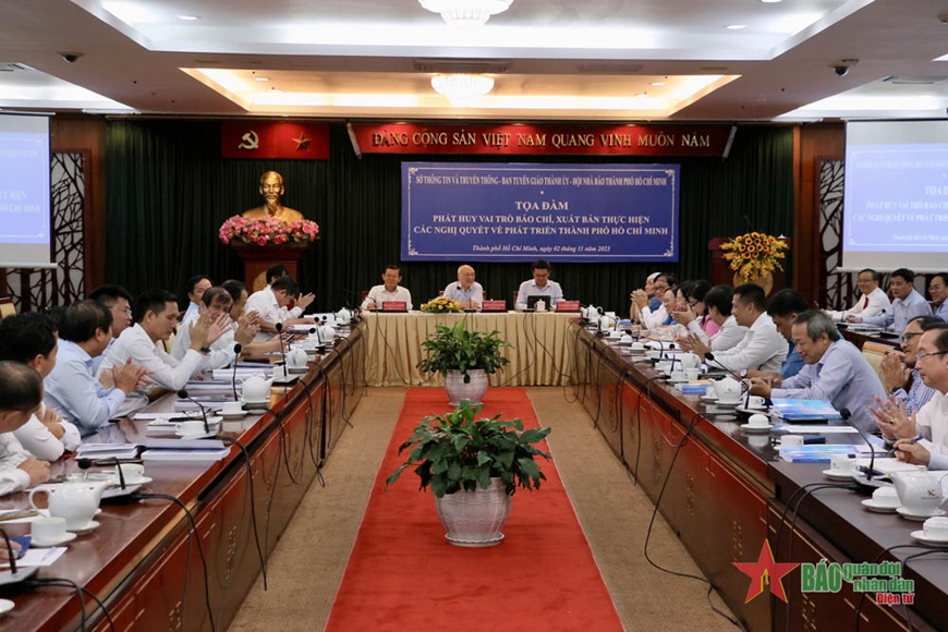 Chủ trì tọa đàm có các đồng chí: Phan Nguyễn Như Khuê, Ủy viên Ban Thường vụ, Trưởng ban Tuyên giáo Thành ủy TP Hồ Chí Minh; Lâm Đình Thắng, Giám đốc Sở Thông tin và Truyền thông TP Hồ Chí Minh; Nguyễn Tấn Phong, Chủ tịch Hội Nhà báo TP Hồ Chí Minh.