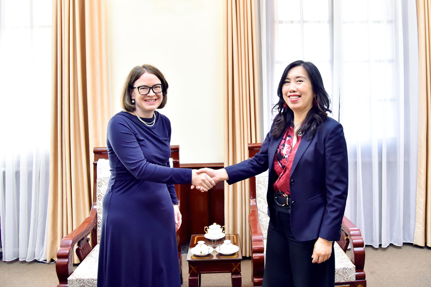 Tại buổi tiếp, Thứ trưởng Lê Thị Thu Hằng đề nghị hai bên tăng cường trao đổi đoàn các cấp, đặc biệt là cấp cao, đặc biệt trong năm 2026, nhân dịp hai nước kỷ niệm 30 năm thiết lập quan hệ ngoại giao.