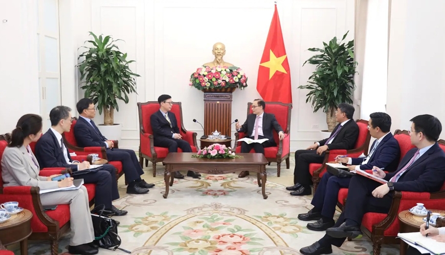 Trong khuôn khổ chuyến thăm Việt Nam từ ngày 2 đến 3-4, Thứ trưởng Thứ nhất Bộ Ngoại giao Hàn Quốc Park Yoon Joo đã có cuộc hội đàm với Thứ trưởng Thường trực Bộ Ngoại giao Nguyễn Minh Vũ vào sáng 3-4.
