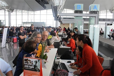 | Hành khách làm thủ tục trên chuyến bay quốc tế của Jetstar Pacific. Ảnh: TIẾN SỸ. |