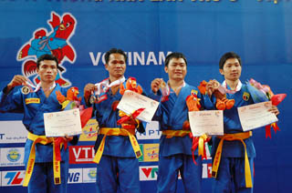 Sáng 31-10, các võ sĩ Vovinam đã trở thành những người đầu tiên mang về cho đoàn thể thao Việt Nam những chiếc huy chương vàng tại Đại hội thể thao châu Á trong nhà lần thứ III (AIG III).