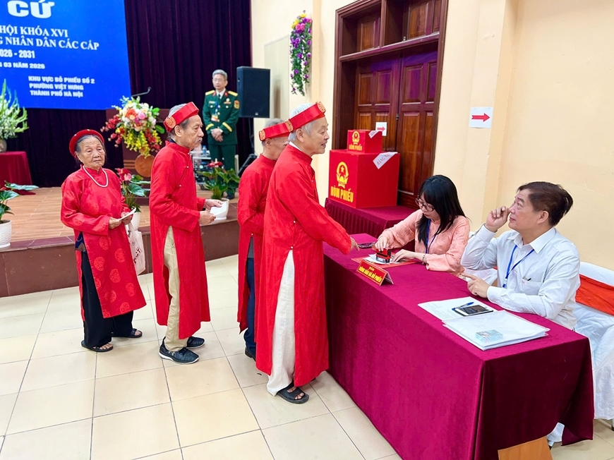| Cử tri Hà Nội đi bỏ phiếu bầu đại biểu Quốc hội khóa XVI và đại biểu HĐND các cấp nhiệm kỳ 2026-2031. Ảnh: qdnd.vn |