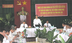 Thủ tướng nhấn mạnh năm 2010 có ý nghĩa hết sức quan trọng, kết thúc 5 năm (2005-2010) và tạo tiền đề cho 5 năm tiếp theo, vì vậy Đảng bộ, chính quyền tỉnh Đắc Lắc phải lãnh đạo, chỉ đạo cụ thể quyết liệt thực hiện thắng lợi chỉ tiêu đề ra, khắc phục triệt để yếu kém đang tồn tại. Về công tác chuẩn bị Đại hội Đảng các cấp ở tỉnh Đắc Lắc, phải xây dựng kế hoạch, chỉ tiêu, biện pháp cụ thể, sát thực, phát huy cho được tiềm năng, lợi thế đặc thù ở địa phương trên tất cả các lĩnh vực, tạo bước phát triển mới. Đắc Lắc cũng cần rà soát lại việc thực hiện các chính sách, các chương trình, nhằm chăm lo tốt hơn nữa mọi mặt đời sống nhân dân, nhất là đối với đồng bào dân tộc thiểu số. Trên lĩnh vực an ninh chính trị, Thủ tướng nhấn mạnh, Đắc Lắc cần thực hiện tốt chủ trương của Đảng, Nhà nước về chính sách dân tộc và tôn giáo, củng cố thật vững chắc an ninh chính trị và trật tự an toàn xã hội, phấn đấu xây dựng Đắc Lắc thành tỉnh trung tâm về chính trị, kinh tế, văn hóa, xã hội của Tây Nguyên, đóng góp xứng đáng vào sự phát triển chung của đất nước.