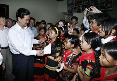 | Thủ tướng Nguyễn Tấn Dũng với các cháu thiếu nhi huyện Nam Đông. Ảnh: TTXVN |