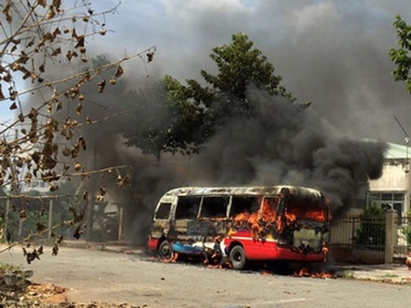 Xe buýt bỗng dưng bốc cháy. Ảnh Dân Trí