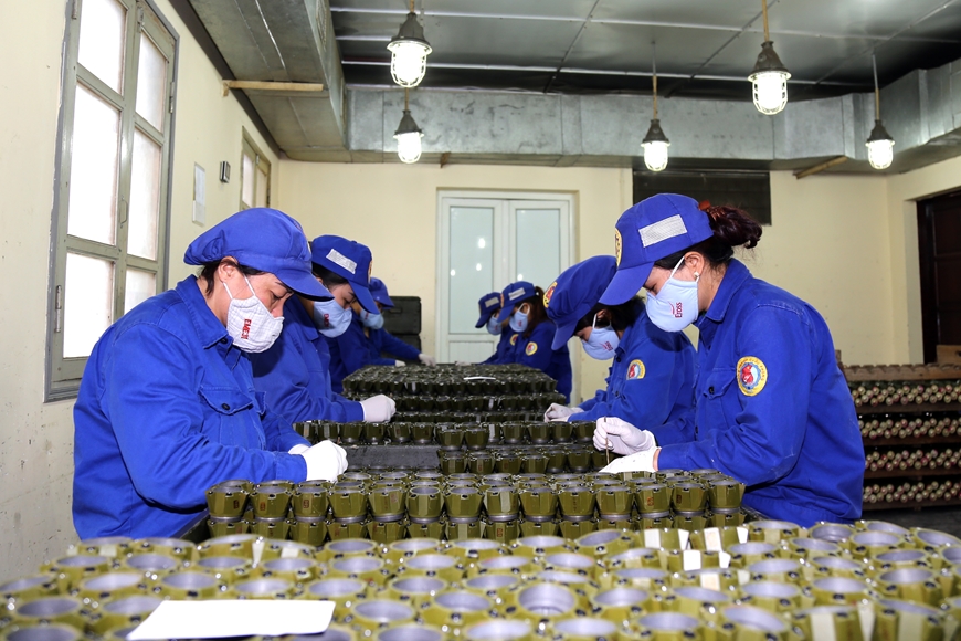 | Công nhân Nhà máy Z131 (Tổng cục Công nghiệp Quốc phòng) tham gia quy trình sản xuất đạn. Ảnh: VĂN SƠN. |
