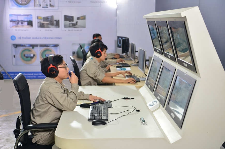 | Kỹ sư Tổng công ty Công nghiệp Công nghệ cao (Viettel) vận hành Hệ thống mô phỏng huấn luyện kíp chỉ huy bay cho không quân (ảnh chụp trước ngày 27-4-2021). Ảnh: HỒNG PHÚC. |