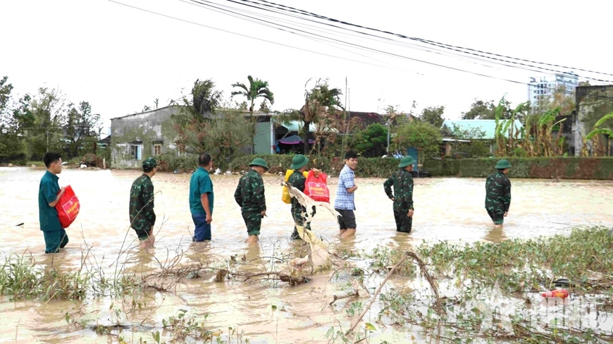 LLVT Quân khu 5 mang quà vào vùng lũ. Ảnh: qdnd.vn