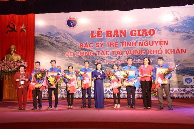 QĐND - Mới đây, Bộ Y tế tổ chức bàn giao 7 bác sĩ trẻ tình nguyện về làm việc tại cơ sở y tế của các huyện nghèo thuộc 4 tỉnh: Lào Cai, Bắc Kạn, Điện Biên và Sơn La theo Dự án “Thí điểm đưa bác sĩ trẻ tình nguyện về công tác tại miền núi, vùng sâu, vùng xa, biên giới, hải đảo, vùng có điều kiện kinh tế-xã hội đặc biệt khó khăn” (Dự án 585).