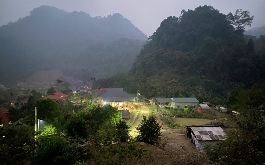 | Đèn năng lượng tỏa sáng tại thôn Ruộng, xã Bát Mọt khi thực hiện mô hình "Bản sáng vùng biên". |
