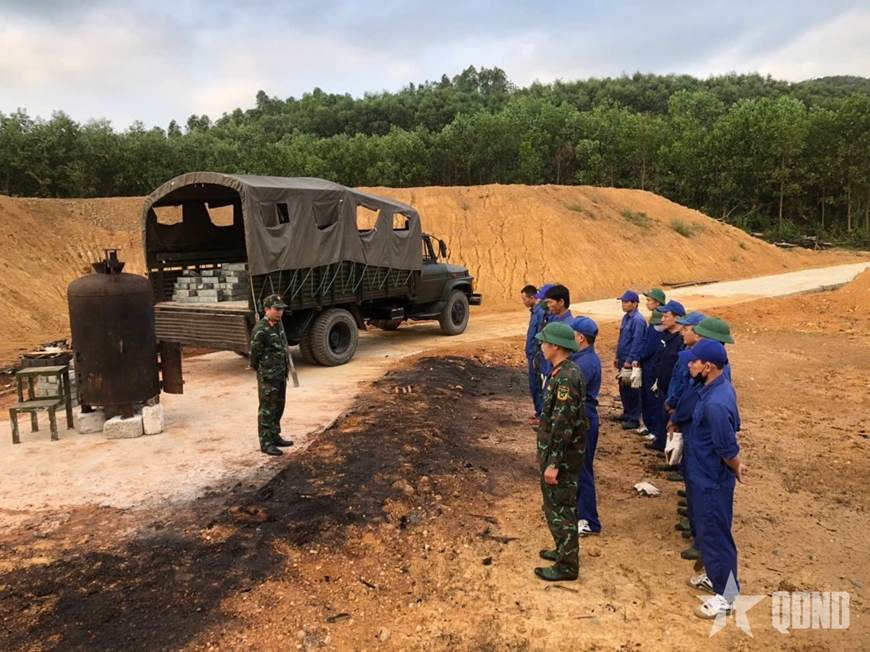 | Kho K866 tổ chức huấn luyện công tác an toàn tại nhà kho đạn dược. Ảnh: HOÀNG ANH |
