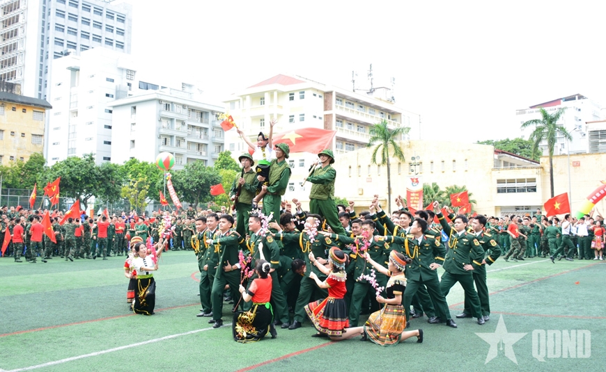 "Quân nhân Gen Z" phải vững vàng trên không gian mạng. Ảnh: Học viên Học viện Kỹ thuật Quân sự tái hiện hình ảnh "Em bé Điện Biên" tại hội thi.