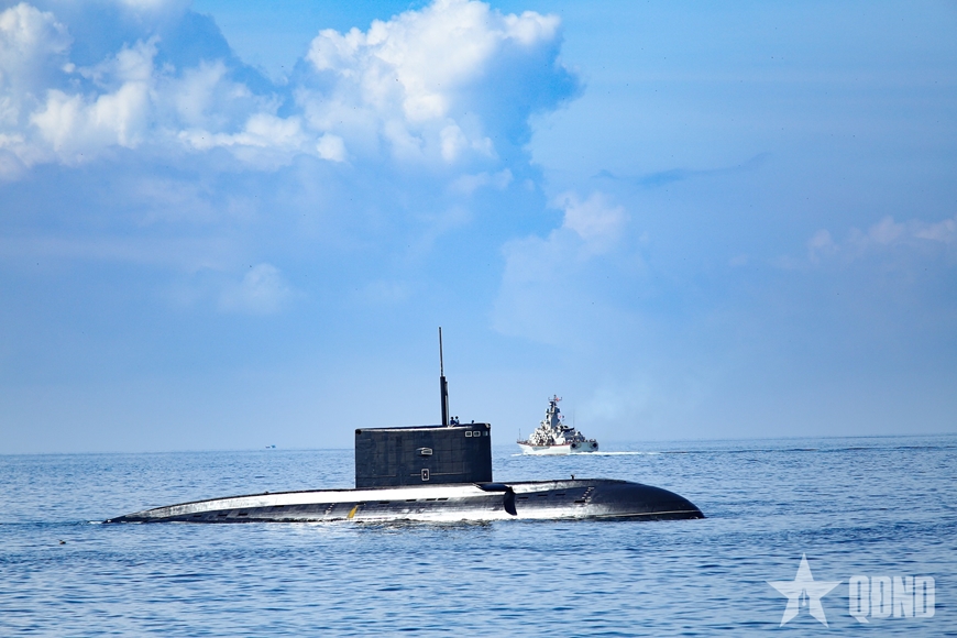 | Tàu ngầm Lữ đoàn 189 cơ động trên biển. |