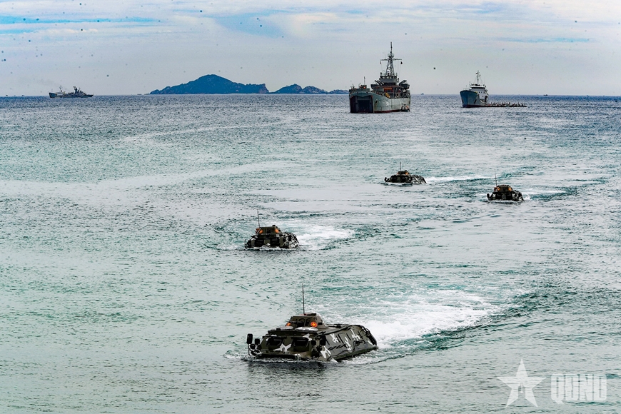| Chiến sĩ hải quân đánh bộ trong diễn tập tổng hợp. |