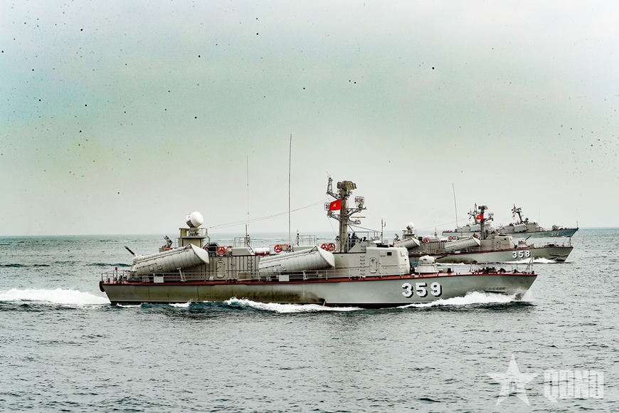 | Biên đội Tàu 358, 359 thuộc Lữ đoàn 172 huấn luyện trên biển. |