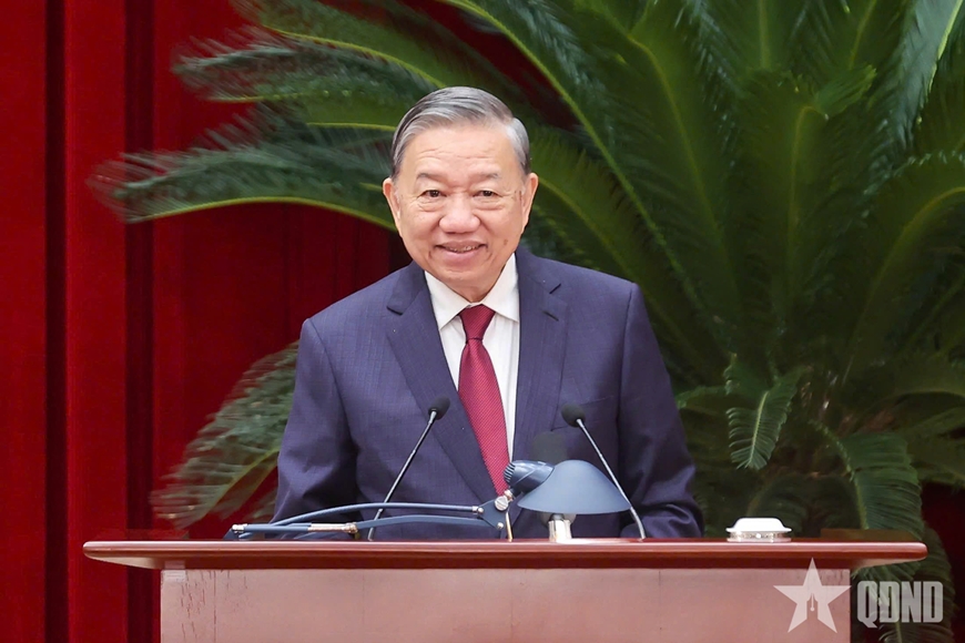| Tổng Bí thư Tô Lâm phát biểu tại Hội nghị Trung ương 14, khóa XIII. Ảnh VŨ PHONG |