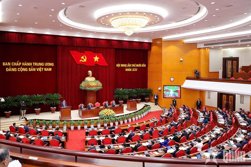 | Quang cảnh Hội nghị Trung ương 14, khóa XIII. Ảnh VŨ PHONG |