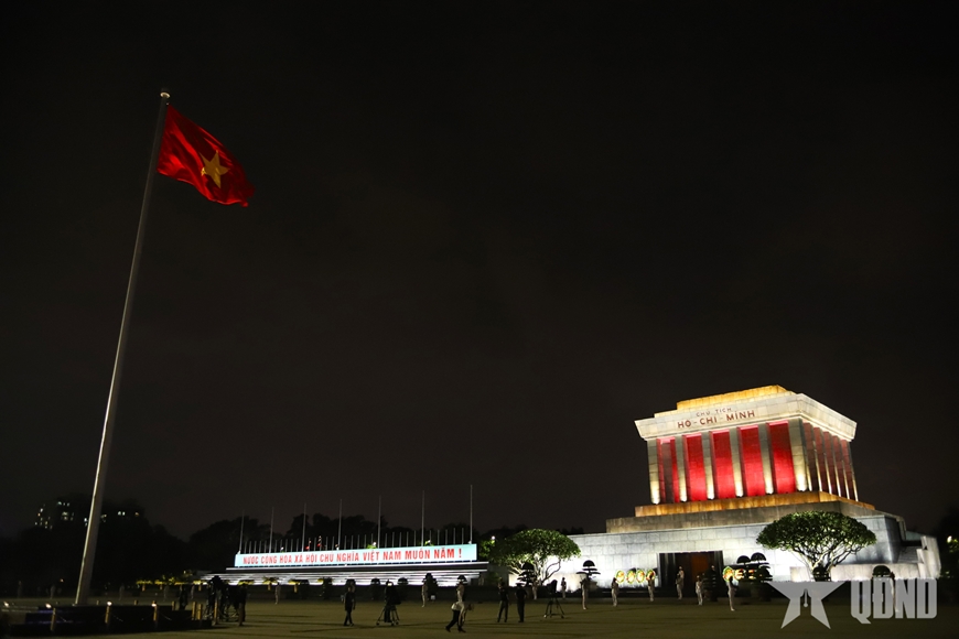 Cờ đỏ sao vàng tung bay phấp phới tại Lăng Chủ tịch Hồ Chí Minh, biểu tượng cho ý chí kiên cường, tinh thần đoàn kết và khát vọng độc lập, tự do của dân tộc Việt Nam.