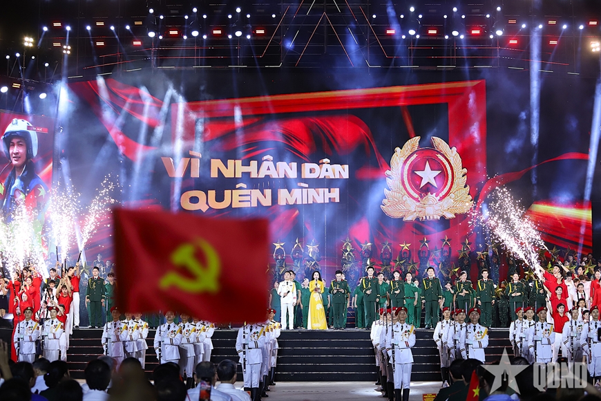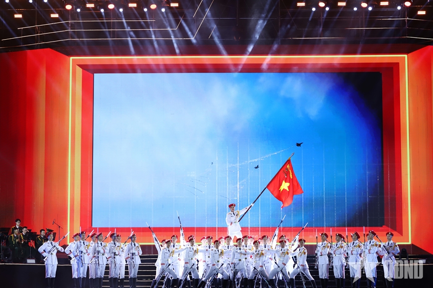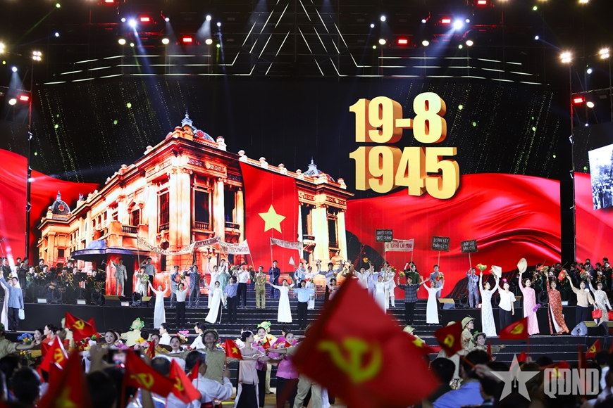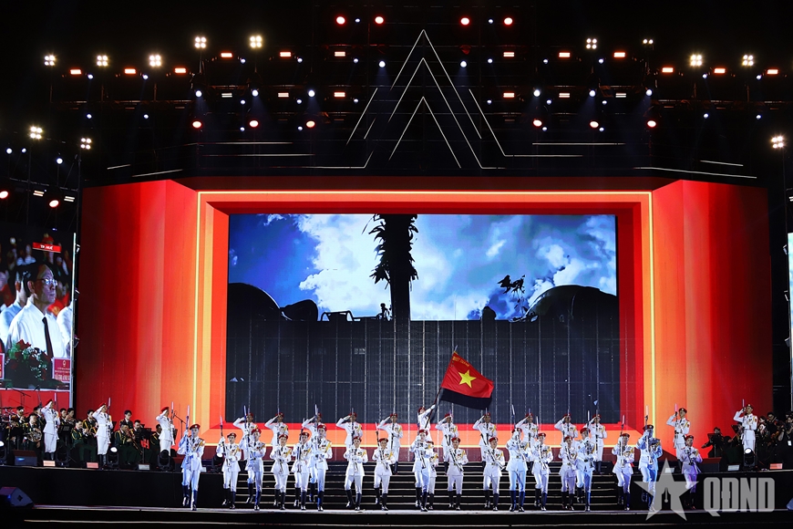 Nội dung: Những hình ảnh thể hiện sự trang trọng, giàu cảm xúc trong một chương trình chính luận nghệ thuật tôn vinh truyền thống yêu nước, khẳng định lý tưởng cách mạng và niềm tin vững bước dưới cờ Đảng.