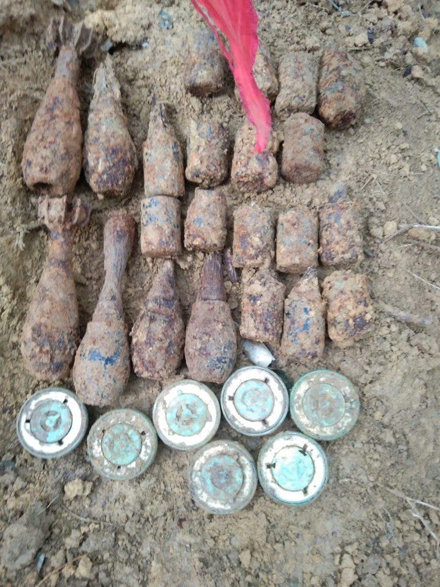 | Những quả mìn sót lại sau chiến tranh được đưa ra khỏi lòng đất. |