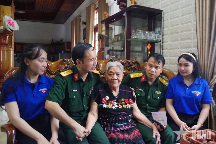 | Cán bộ, trí thức trẻ tình nguyện Đoàn Kinh tế - Quốc phòng 92 thăm Anh hùng Lực lượng vũ trang nhân dân Kan Lịch. |