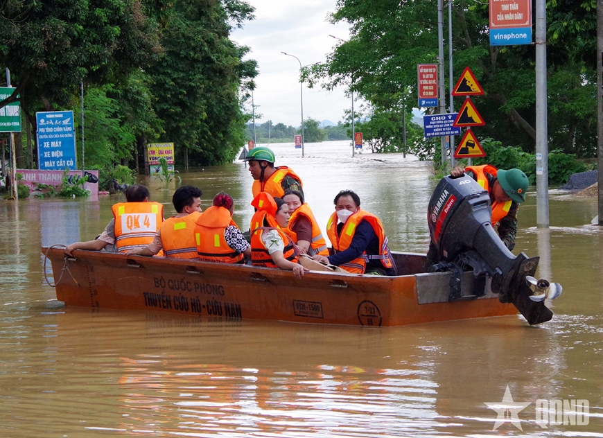 Ban Chỉ huy Phòng thủ khu vực 4 - Tương Dương (Bộ CHQS tỉnh Nghệ An) dùng thuyền vận chuyển bà con nhân dân sơ tán khỏi vùng bị chia cắt.