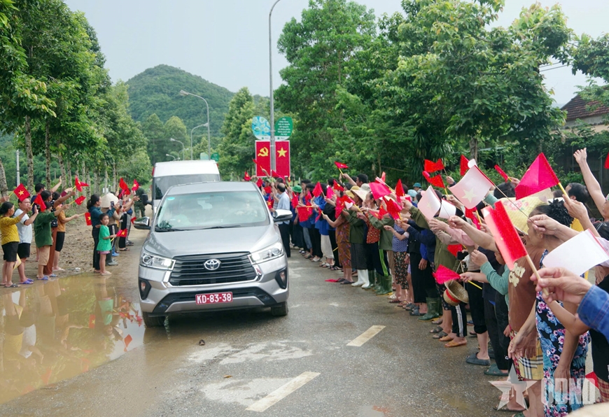 Sau gần 10 ngày giúp nhân dân xã Con Cuông chống lũ, cán bộ, chiến sĩ Trung đoàn 335 (Sư đoàn 324) rút quân trong sự bịn rịn, biết ơn và yêu thương của người dân.