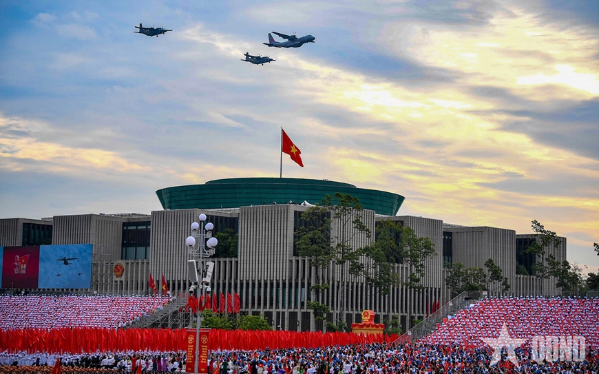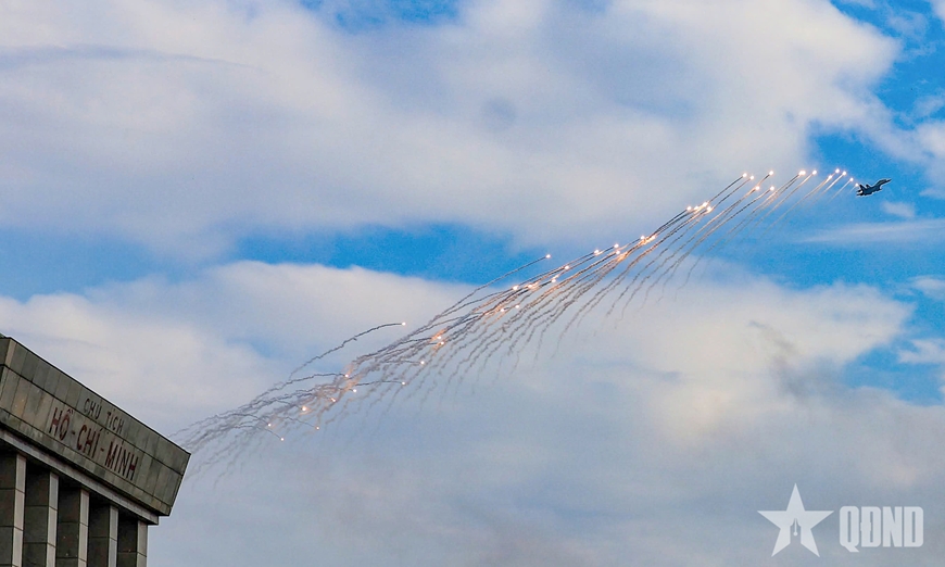 Trên quảng trường Ba Đình lịch sử, trong khoảnh khắc trọng đại của Lễ kỷ niệm 80 năm Cách mạng Tháng Tám và Quốc khánh nước Cộng hòa xã hội chủ nghĩa Việt Nam, những cánh bay của Không quân nhân dân Việt Nam có màn chào mừng uy dũng.