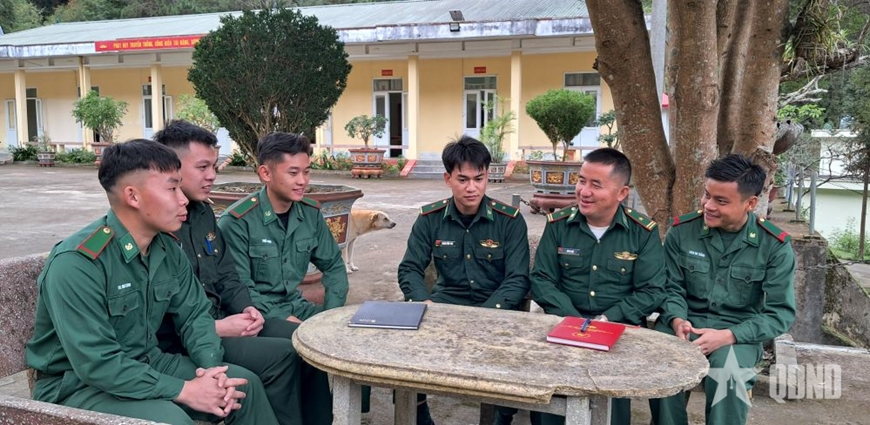 | Những đảng viên trẻ Đồn Biên phòng Đồng Văn chia sẻ kinh nghiệm trong thực hiện “Quy tắc ứng xử văn hóa trong BĐBP tỉnh Hà Giang”. |