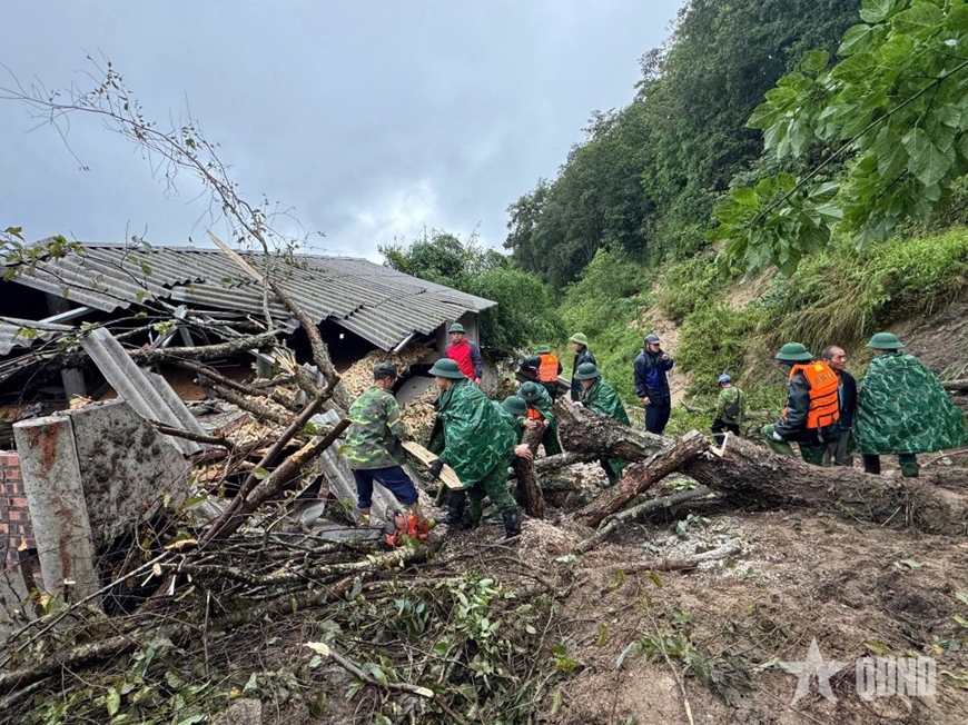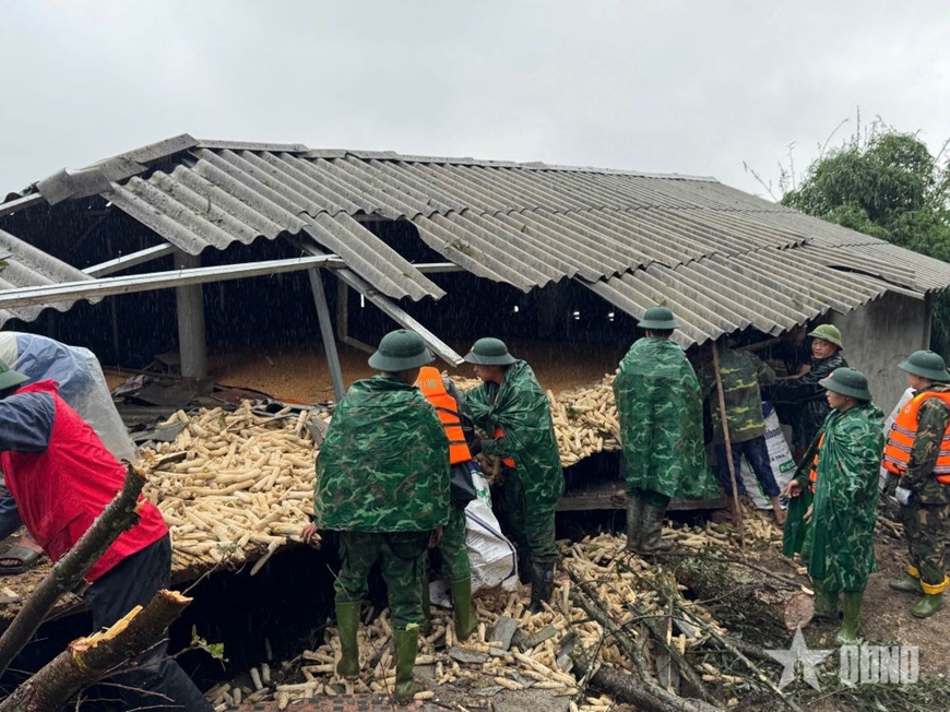 | Cán bộ, chiến sĩ Đồn Biên phòng Thàng Tín giúp nhân dân địa bàn khắc phục hậu quả mưa lũ. Ảnh: Đồn Biên phòng Thàng Tín |