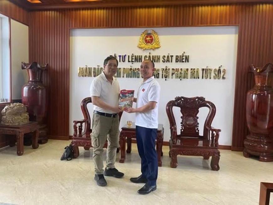 | Buổi đón tiếp tại trụ sở Đoàn đặc nhiệm Phòng, chống tội phạm ma túy số 2 thuộc Bộ tư lệnh Cảnh sát biển (tác giả bên trái). |