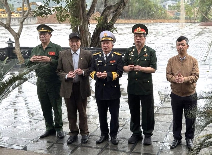 | Cùng cán bộ TP Sông Công thắp hương tại Đồi Phong tướng thuộc ATK Định Hóa (tác giả đứng thứ 2, từ phải qua). |