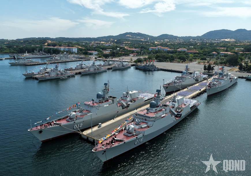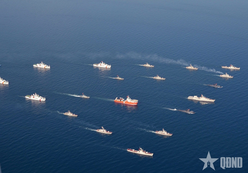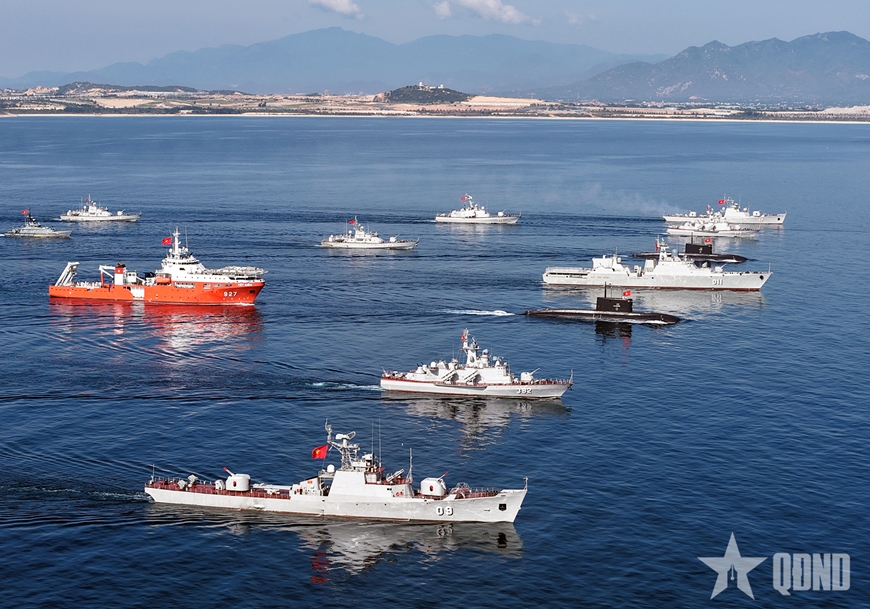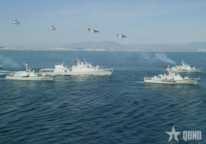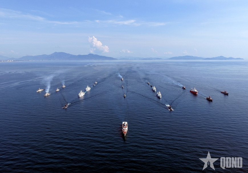 Đội hình quả trám với Tàu 015-Trần Hưng Đạo đi đầu cùng các tàu ngầm, tàu mặt nước của Hải quân nhân dân Việt Nam, Cảnh sát biển, Bộ đội Biên phòng và Hải đội Dân quân thường trực, hàng ngũ chỉnh tề, thể hiện sức mạnh, ý chí của các lực lượng quyết tâm giữ vững từng tấc đảo, sải biển của Tổ quốc.