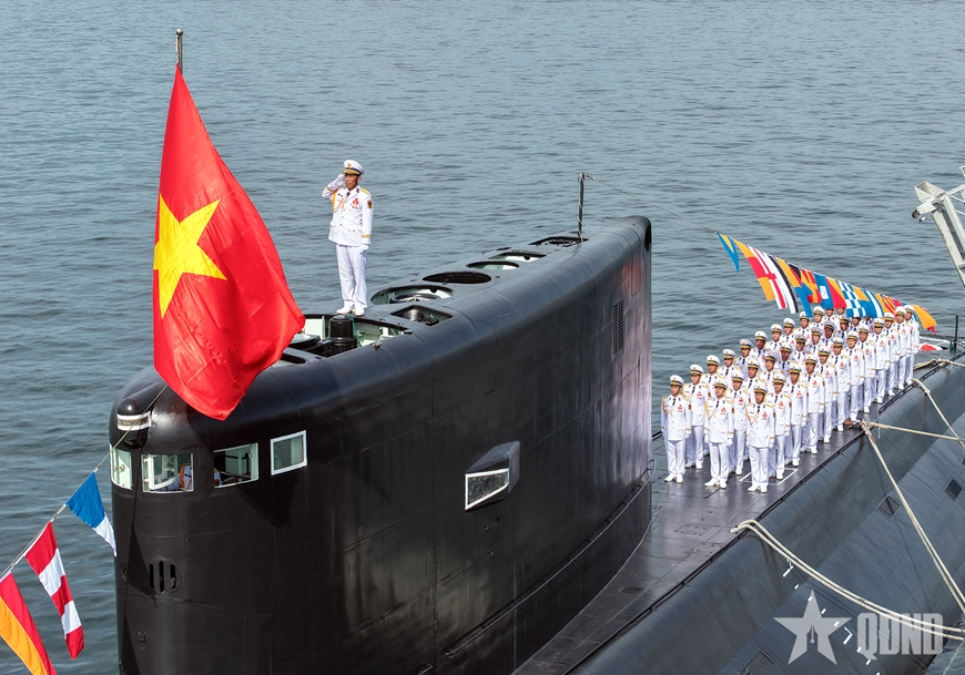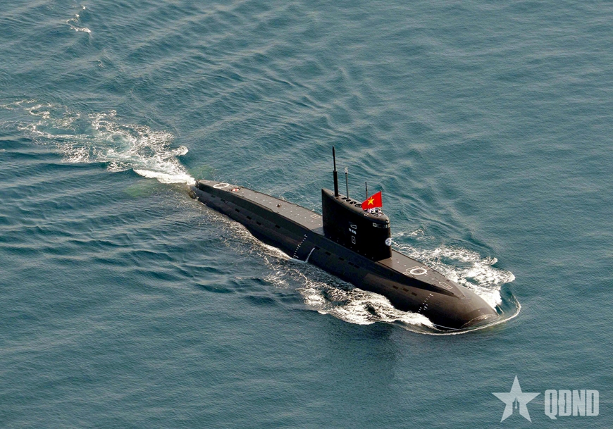 Tàu ngầm Kilo 636 được mệnh danh là “hố đen đại dương”, có sức mạnh răn đe lớn của Hải quân Việt Nam. Con tàu mang trên tháp lá quốc kỳ đỏ thắm - biểu tượng cho chủ quyền quốc gia trường tồn.