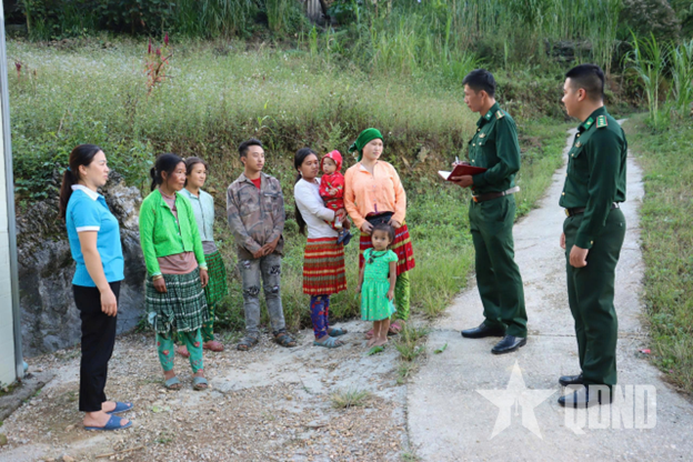 | Cán bộ Đồn Biên phòng Sơn Vĩ đồng hành cùng dân bản, tuyên truyền nâng cao ý thức bảo vệ đường biên, mốc giới Tổ quốc. |