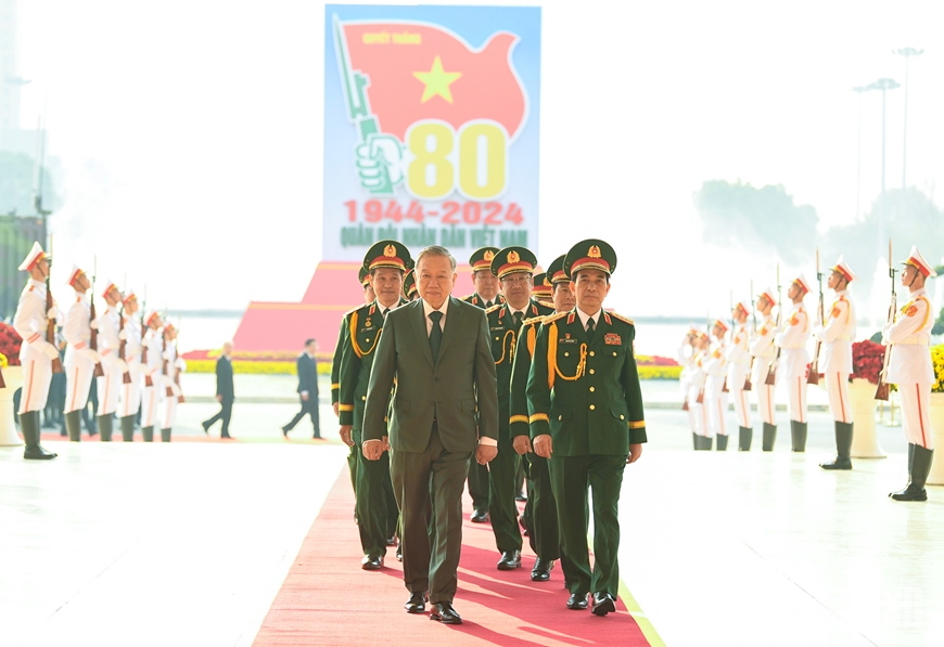 Lãnh đạo Quân ủy Trung ương - Bộ Quốc phòng đón Tổng Bí thư Tô Lâm tới dự Lễ kỷ niệm 80 năm Ngày thành lập Quân đội nhân dân Việt Nam (22-12-1944/ 22-12-2024) và 35 năm Ngày hội Quốc phòng toàn dân (22-12-1989/ 22-12-2024).